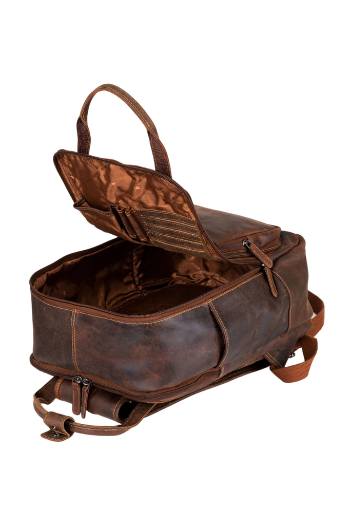 This Greenwood leather backpack Mackay is made of high-quality Wax Pull-up leather. Wax pull-up leather is characterized by a soft and supple structure. Any signs of wear can be easily rubbed away by the special wax treatment that the bag has undergone. This keeps your bag looking as new for years.