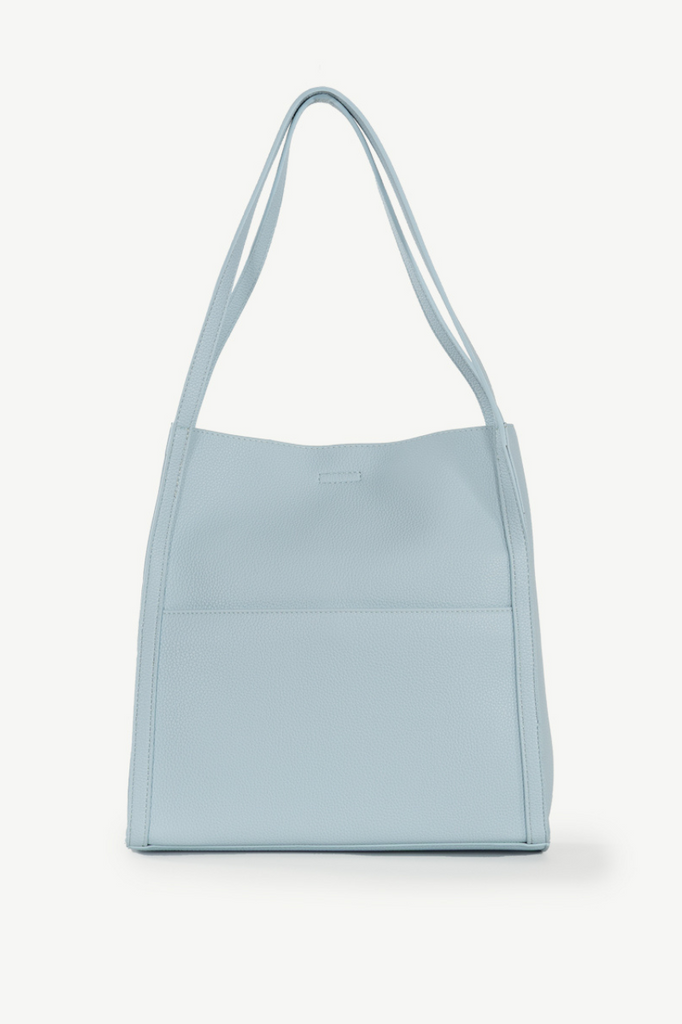 The Torino Tote features a tall, tapered silhouette with a large front pocket (perfect for your phone!) secured by a magnetic closure. The sides are finished with self-coloured picture frame-style edges for a defined shape.